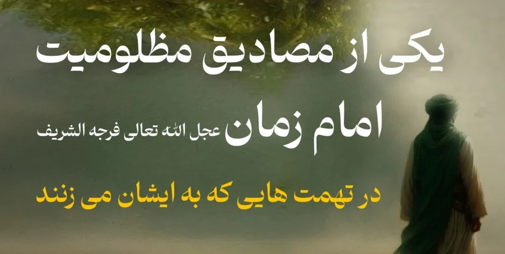 غربت و مظلومیت امام زمان(عجل الله) در تهمتهایی که به ایشان میزنند و حرف های نادرست و غلطی که دشمنان یا دوستان نادان آن حضرت به آن بزرگوار نسبت می دهند. به عنوان مثال برخی می گویند: آن حضرت حالا حالاها ظهور نمی کند!برخی می گویند: اگر ظهور کند گردن همه را می زند! برخی می گویند: دعا کن که آقا نیاید که اگر بیاید اول گردن من و تو را می زند! عده ای می گویند: وقتی بیاید خون رکاب اسبش را می گیرد و هفتاد آسیاب از خون مردم به گردش در می آید! عده ای می گویند: غیبت امام زمان (عج) تقدیر خداوند است، خدا خواسته که آن حضرت غایب باشد و هر موقع هم خودش بخواهد, به او امر می کند که ظهور کند؛ پس دعای ما برای ظهور آن حضرت فایده ای ندارد!برخی می گویند: او هنوز متولد نشده و در آینده به دنیا می آید!برخی دیگر می گویند: او ظهور کرده و از دنیا رفته است! (این نظریه فرقه ضاله بهائیت است).